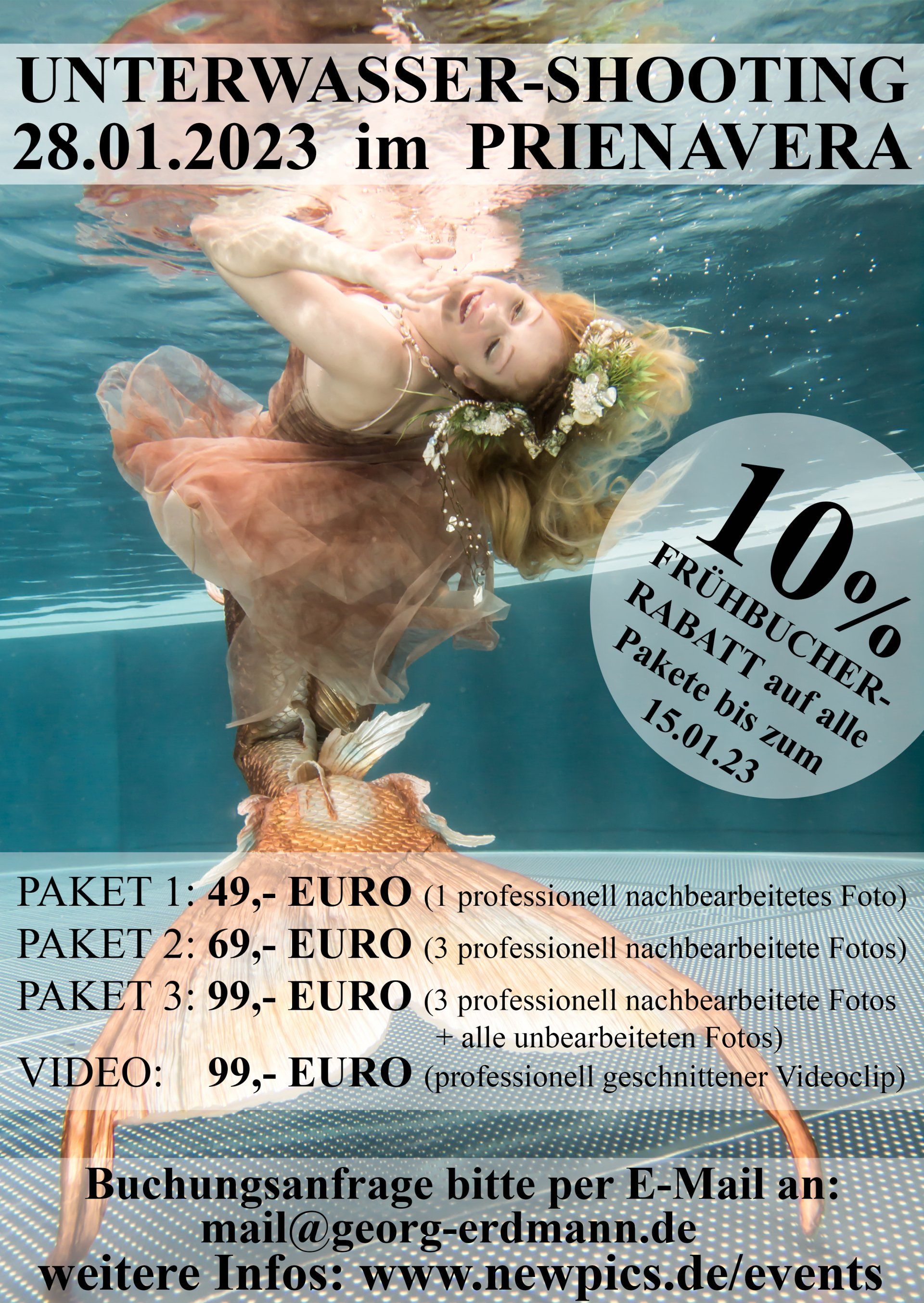 Benötigen Sie weitere Infos oder möchten Sie gern einen freien Termin für ein Unterwasser-Shooting erfragen, schreiben Sie mir bitte einfach kurz per E-Mail: mail@georg-erdmann.de